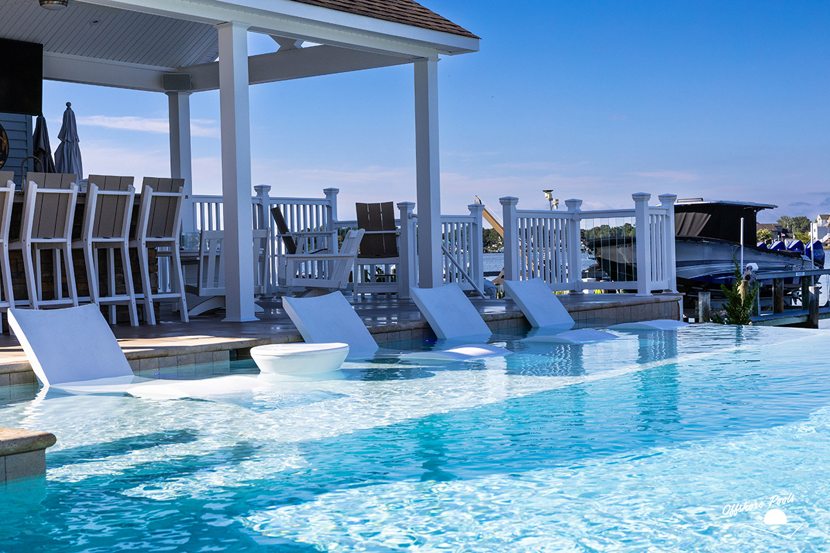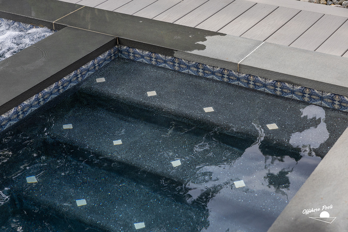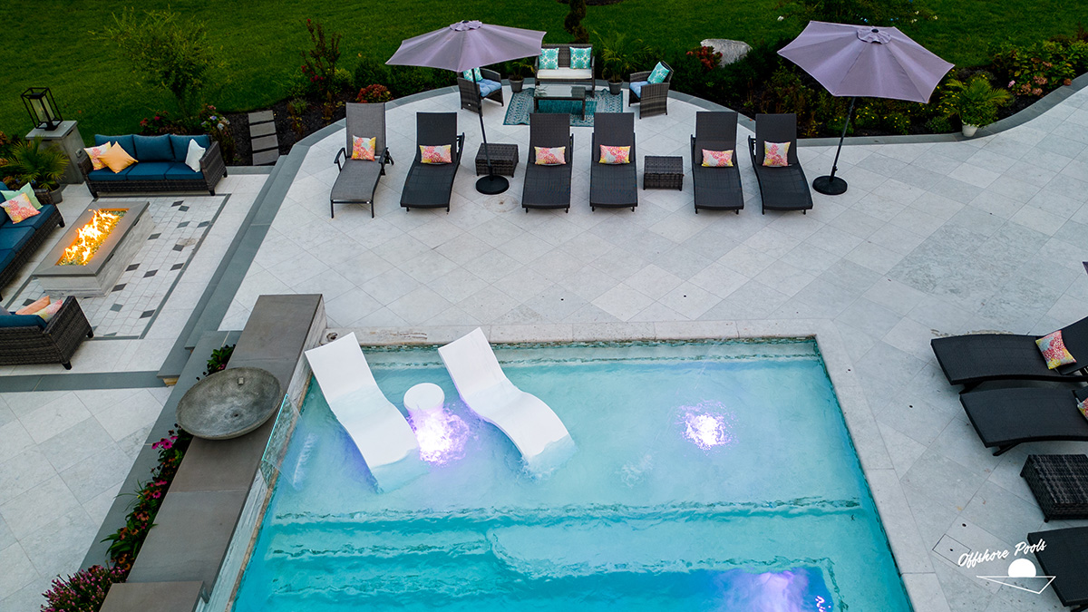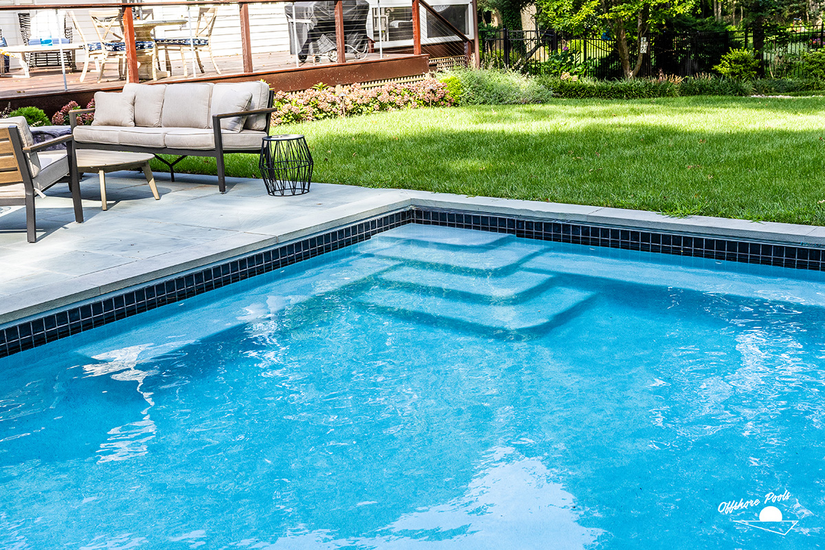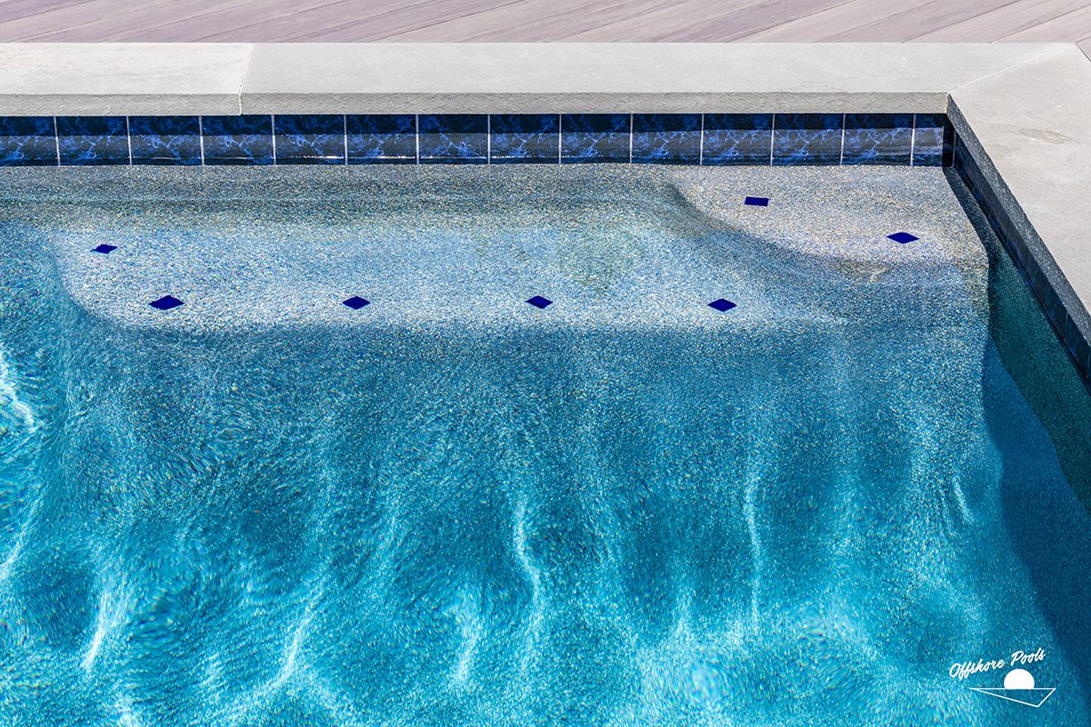 When constructing a pool its important to think about what you are trying to achieve out of the space. Proper seating and entryways are an important part of that design. With gunite pools there are many options that can be completely customized to what you are looking for specifically. Offshore Pools will assist you in this design based off your desires. Please take a look at some of our completed work below